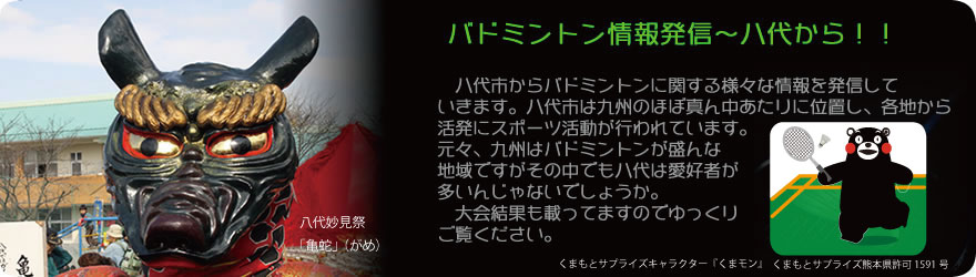 - 大会情報ページ(八代地区)へ『令和6年度八代市バドミントン混合&新人ダブルス大会』の 結果を掲載しました。